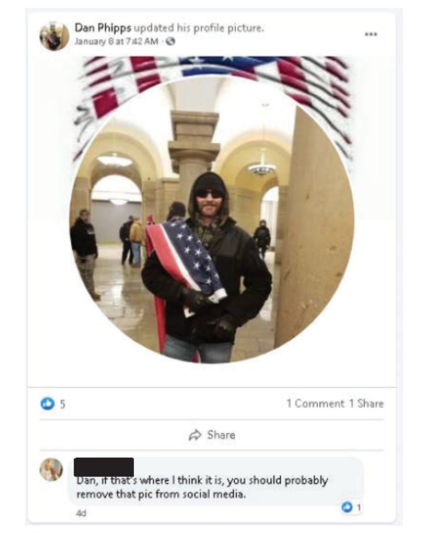 Coming up at 2 p.m. we've got a plea hearing scheduled for Daniel Phipps, of Texas. Phipps wrote on FB: "Everyone talks about being a patriot until its time to do patriot sh*t." He was indicted for assaulting a DC Police officer outside the Capitol on January 6.