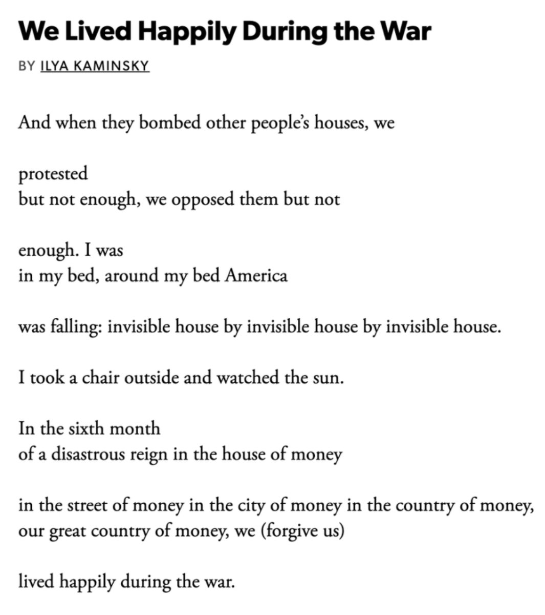 Also, uh, hello? Ilya Kaminksy? Famed Ukrainian-American poet with a famed poem about this exact situation? Hits a little too close to the mark, I guess.