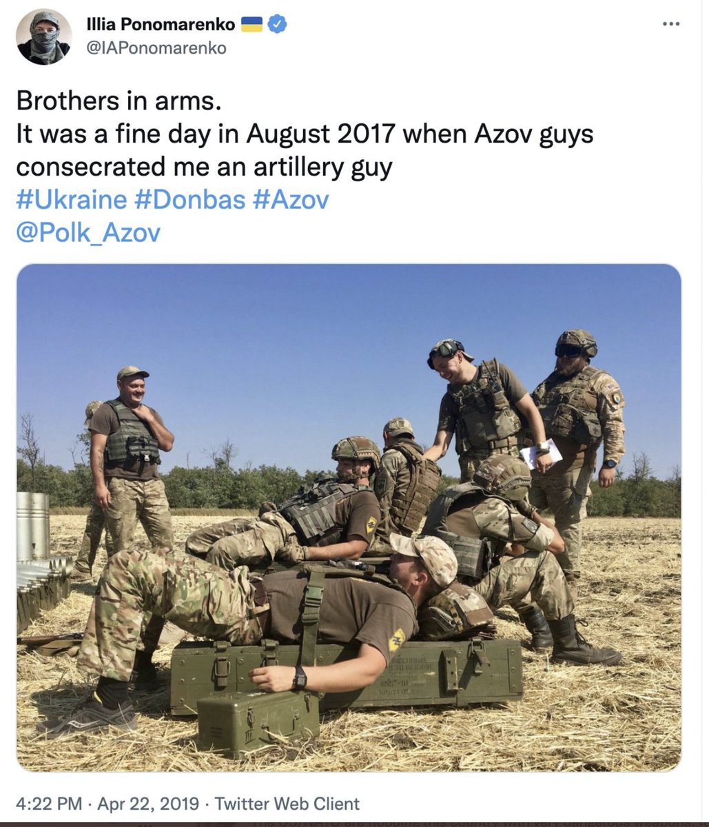 That @IAPonomarenko has become the most celebrated Ukrainian star -- second only to Zelensky -- is just stunning. He not only explicitly professed his devotion to the Azov Battalion - his "brothers-in-arms" - but he knows he doesn't have to delete it because the West doesn't care