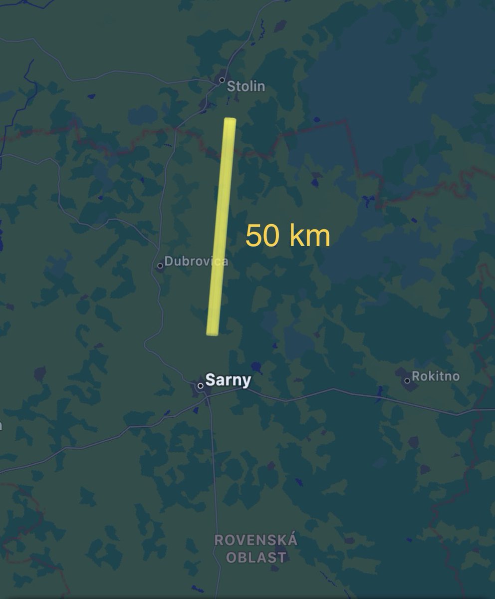K nejbližšímu většímu městu v Bělorusku (Stolin), je to jen 50 km.