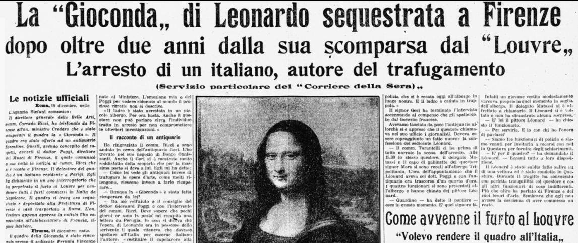 Per il furto furono indagati anche Guillaume Apollinaire e il pittore Pablo Picasso.