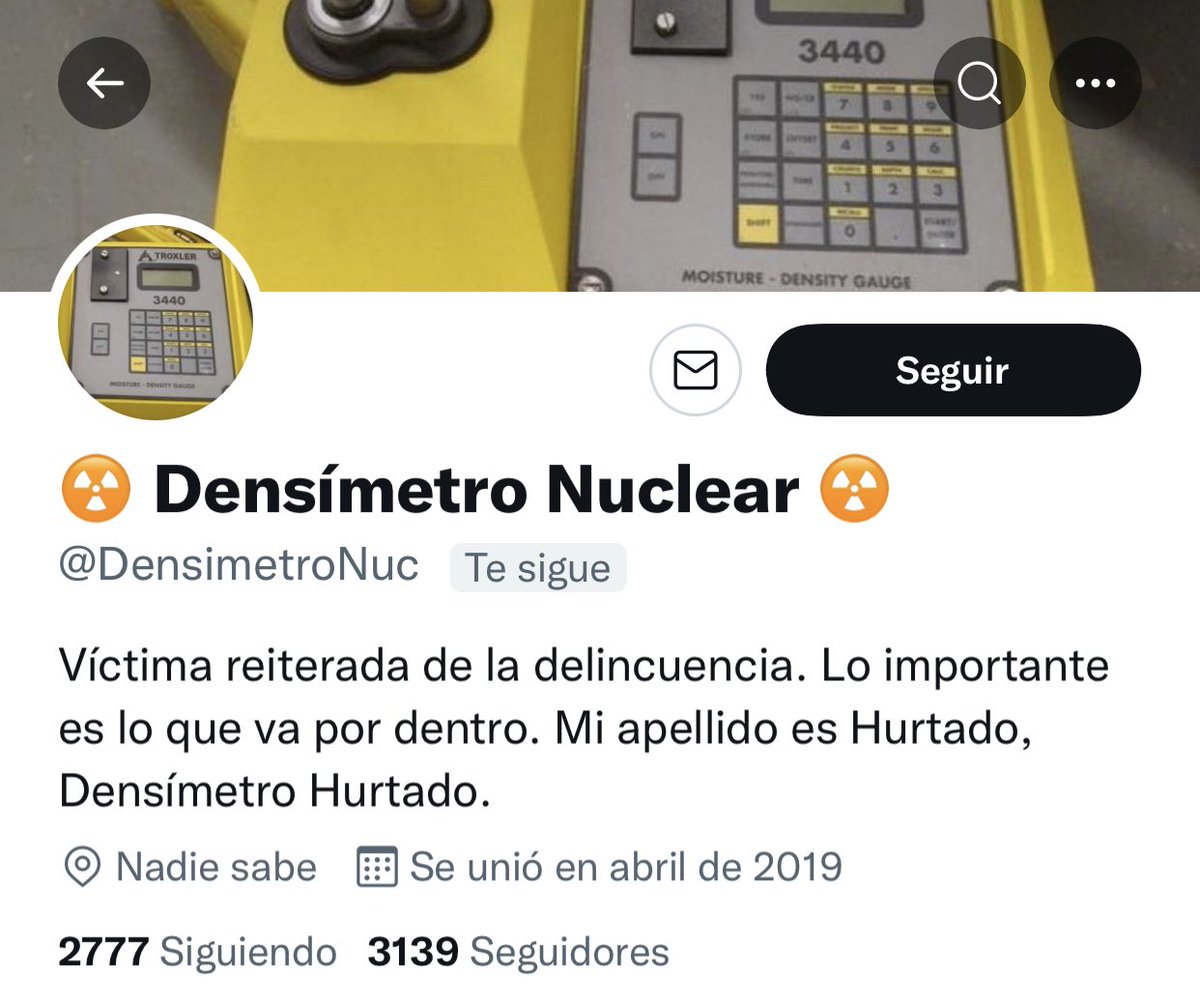 Como curiosidad, en Chile 🇨🇱, debido a la alta frecuencia con la que se roba este densímetro, ya dispone de su propia cuenta de Twitter: @DensimetroNuc