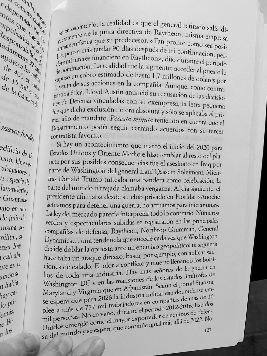 En Estados Unidos jamás puedes tener una carrera como periodista en las grandes medios si estás en contra de la guerra, la que sea. Ya ni te digo si eres pacifista. No hay prácticamente ningún gran medio que no tenga intereses en las empresas contratistas del Pentágono.