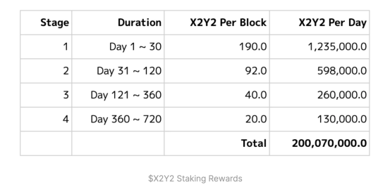 9)仔细阅读官方白皮书,X2Y2质押分为四个阶段,每个阶段收益按块减半,所以每区块收益从190、92、40到20,相对平滑。