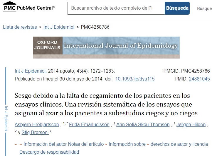 en el International Journal of Epidemiology , en sus conclusiones, declaró: Este estudio proporciona evidencia empírica de un sesgo pronunciado debido a la falta de cegamiento de los pacientes en ensayos clínicos aleatorizados complementarios/alternativos ncbi.nlm.nih.gov/labs/pmc/artic…