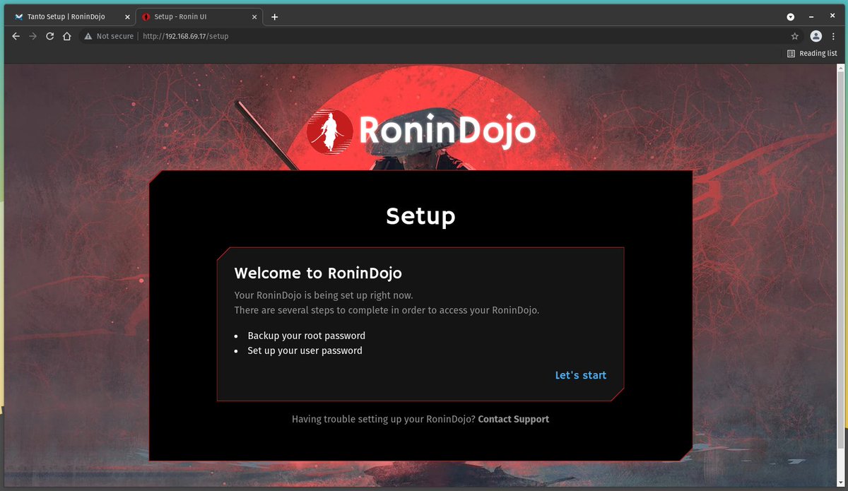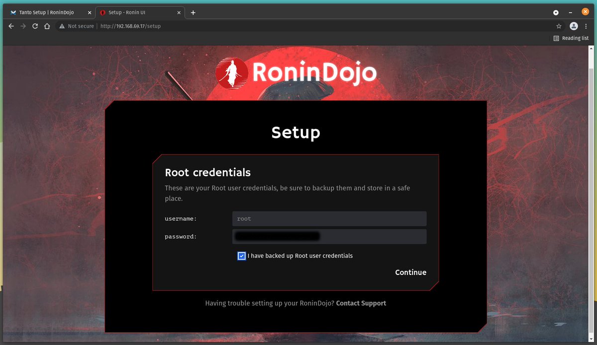 Find the Tanto local IP address from a PC on the same network & enter it in your web browser. Follow the prompts to note your root credentials and create a password for your user credentials.