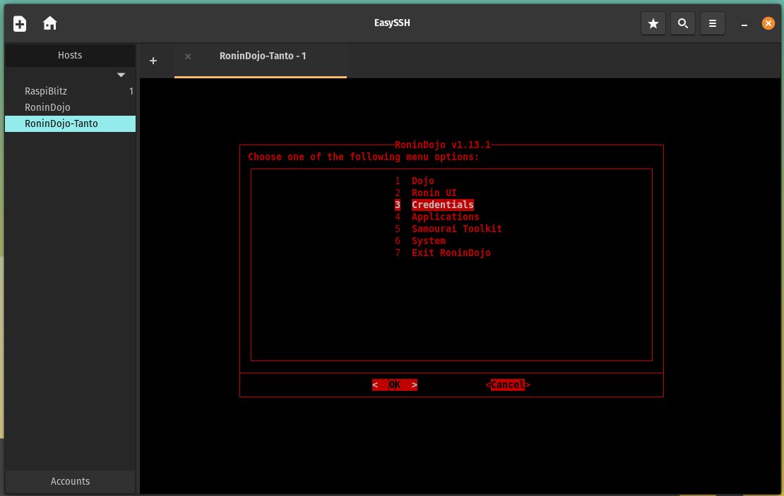 18/25 Open an SSH session to your Tanto using the same user login credentials as the web interface. Navigate to Samourai Toolkit>Whirlpool>Start - to initialize Whirlpool.