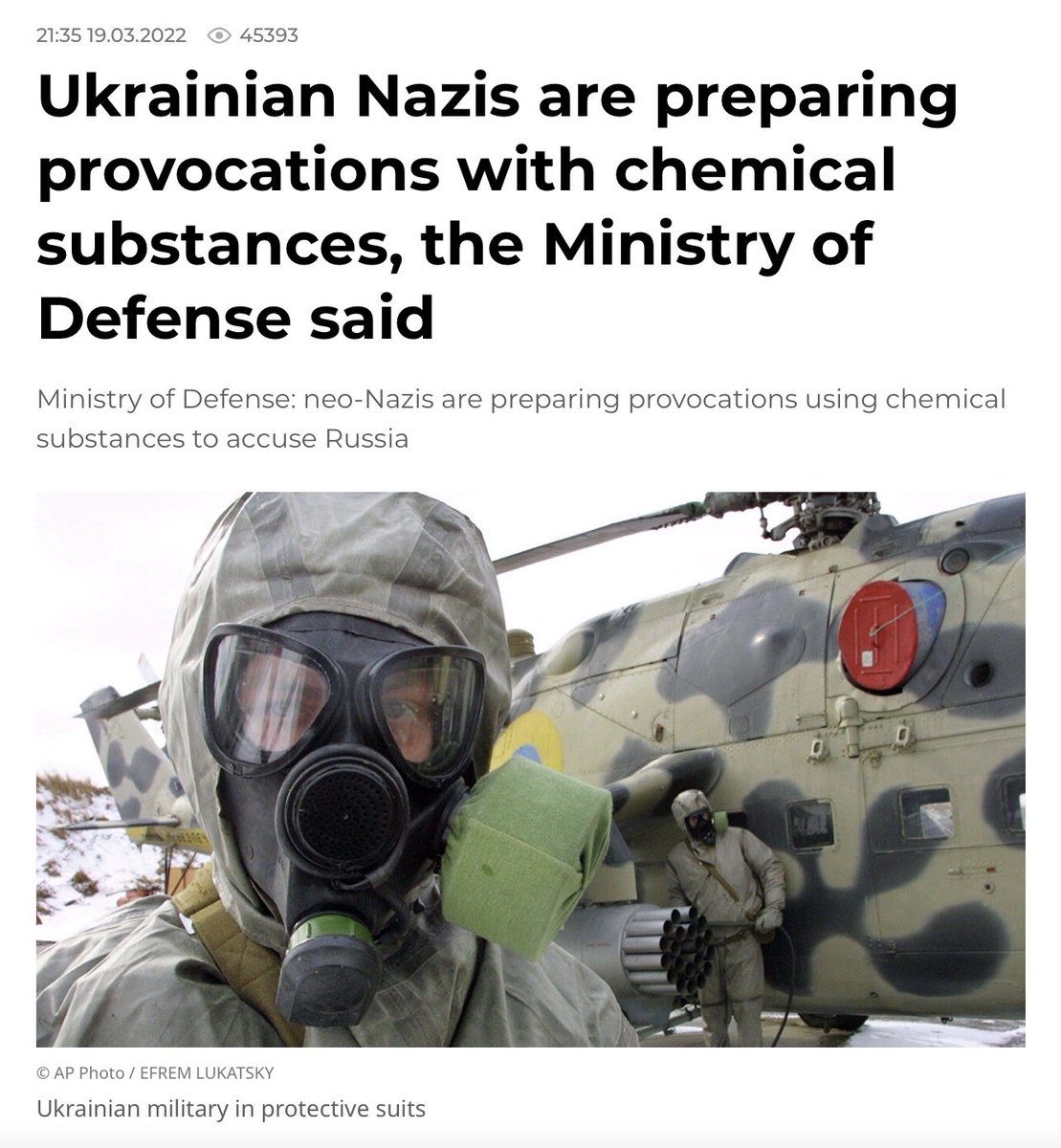 #BREAKING: Concerning “update” by Russia. In a media Briefing, Head of the Russian National Center for Defense Management said “Ukrainian Nazis” were preparing to use chemical weapons - specifically ammonia and chlorine gas- on their own citizens in Sumy.