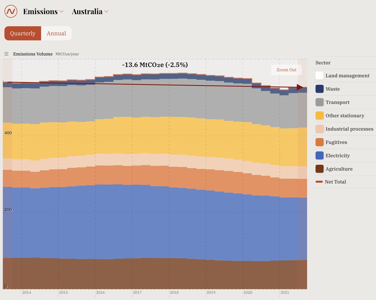 putting land management aside for a sec, over the last 15 years (since FY2005) australia's emissions have dropped by only 2.9%.