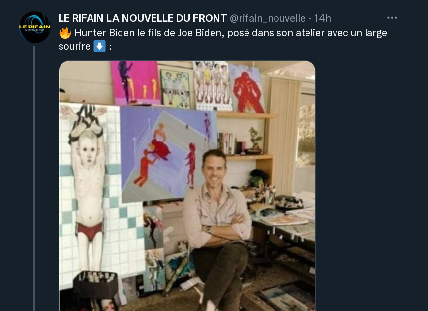 À gauche une photo de Hunter Biden, fils du président Biden, dans son atelier de peinture.