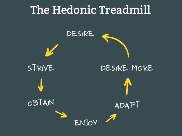 When you make more money, expectations, and desires rise in tandem, which results in no permanent gain in happiness.