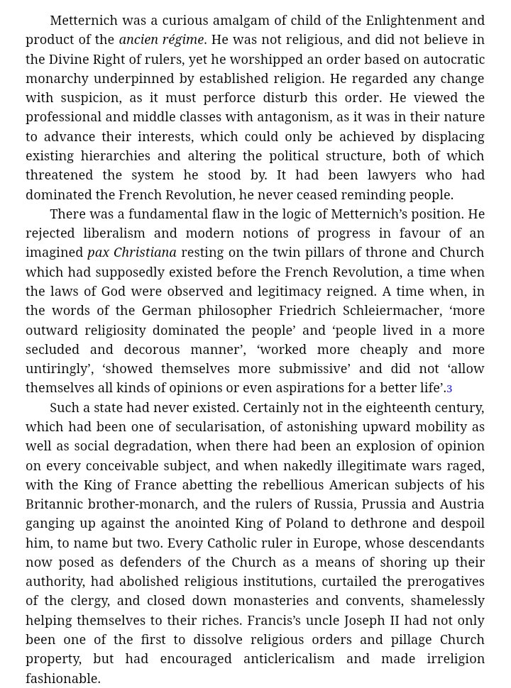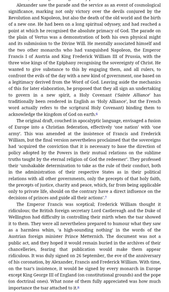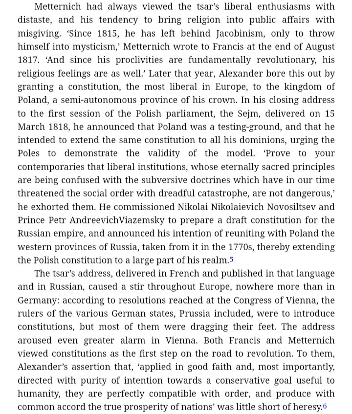 Overall, a good book. Although Zamoyski is obviously on a side, his book is full of detail on secret police, censorship, and political conspiracy theories that are often relegated to a few sentences in traditional diplomatic and political histories of this period.