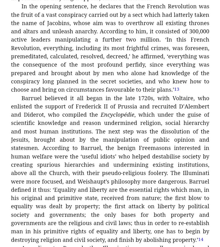 A former French Jesuit wrote a bestseller in which he argued that the French Revolution, and all other political upheaval in Europe, was the result of the Freemasons, whose ultimate aim was the destruction of all hierarchy and order.