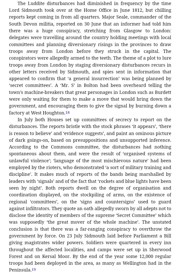 The British government believed there was a nationwide Luddite conspiracy to overthrow the government based on vague reports from informers. They sent out thousands of regular troops in response.