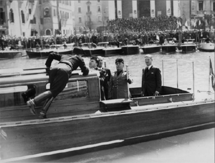 Figuriamoci una fotografia che ritrae un gerarca fascista mentre sta cadendo in acqua.