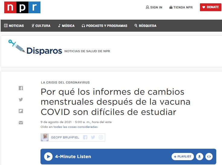 Salud de la Mujer de los Institutos Nacionales de Salud (NIH), confirmó una asociación entre el ciclo menstrual longitud y v4cun4s C0V1D-19.