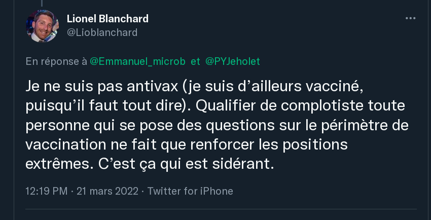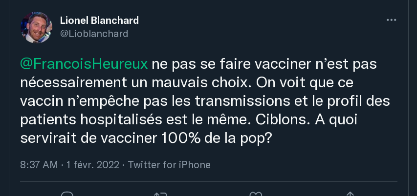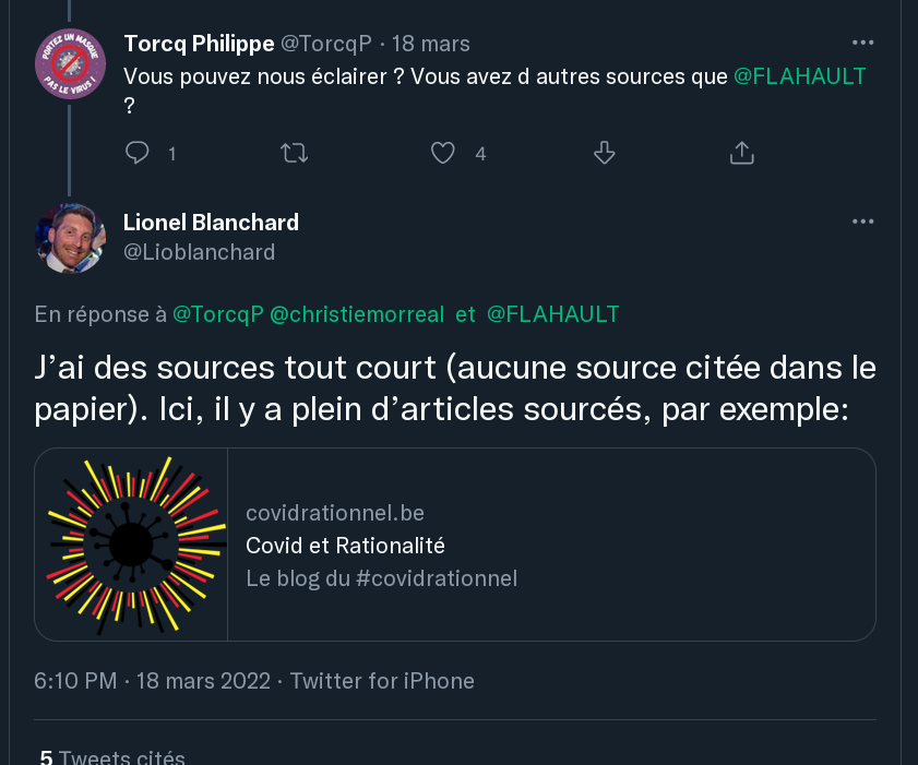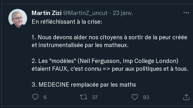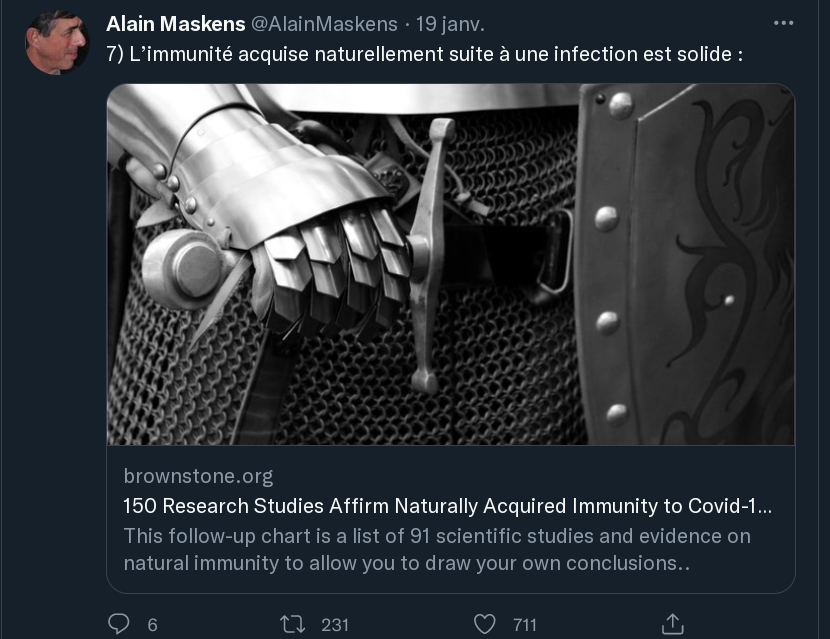 C'est marrant... Mais une fois qu'on a jeté un œil à ce qu'il balance sur les RS, on n'est plus du tout étonné de découvrir qu'il s'informe sur le blog de CovidRationnel... 7/8