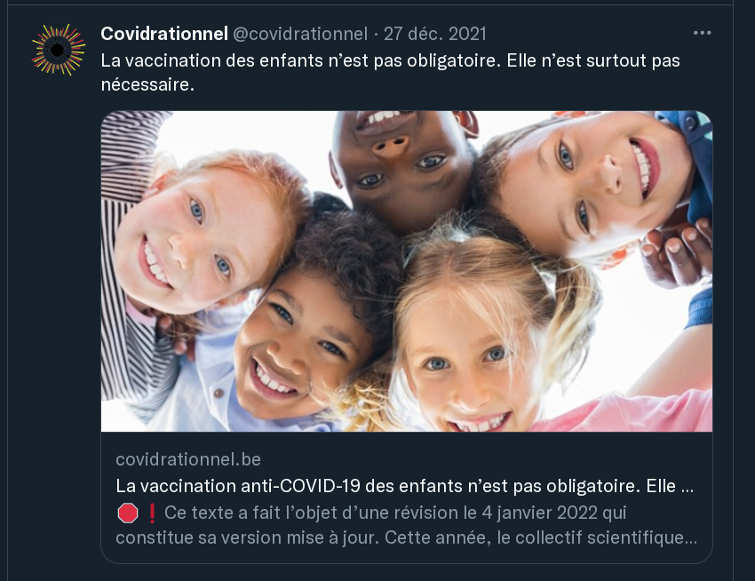 Outre CovidRationnel, on a le Brownstone Institute, Martin Zizi, Bernard Rentier chez BAM, etc.