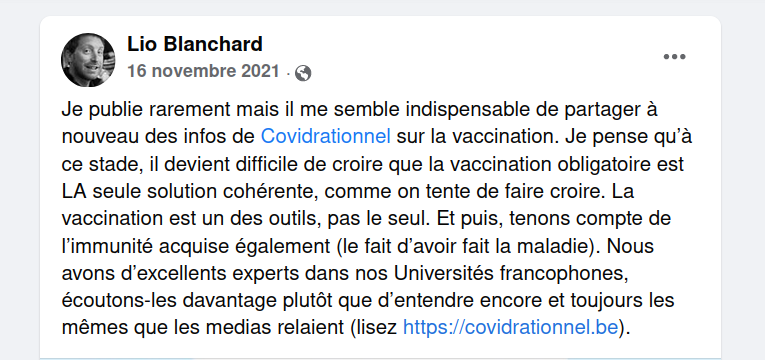 Quand, sur Facebook, il recommande à ses followers 1 source d'information sur le Covid, c'est le blog de CovidRationnel.