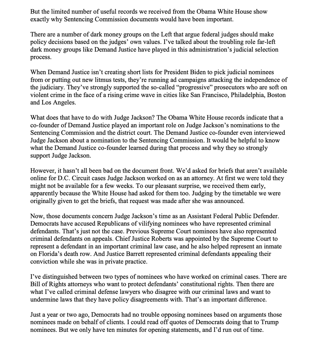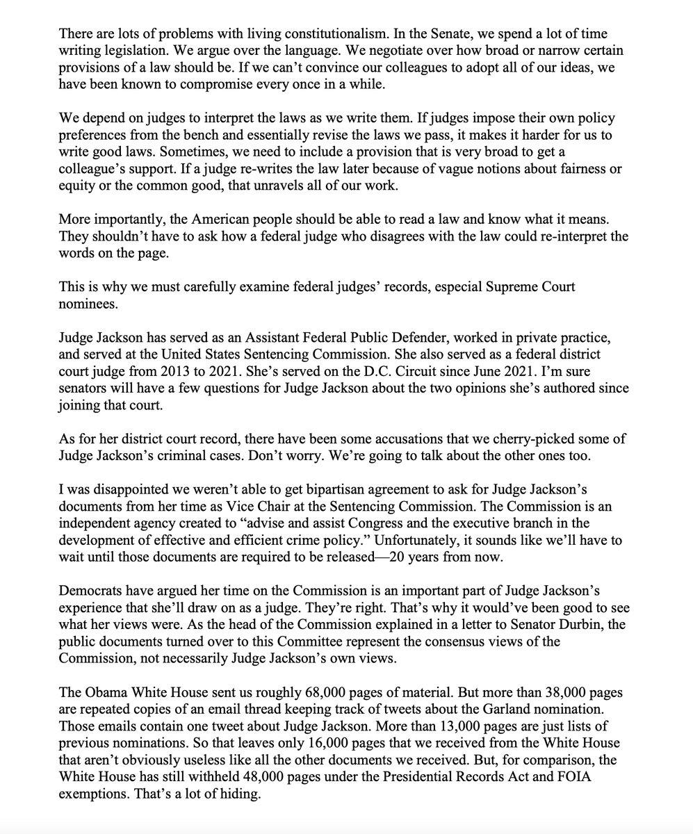 Here is the full text of Judge Ketanji Brown Jackson's opening statement from yesterday (3/21/22), on the first day of her confirmation hearing for the US Supreme Court. 2/
