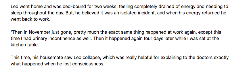 Then over a year later while at work he suddenly passed out at work:
