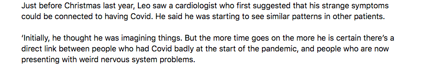 17/ ‘Initially, he thought he was imagining things. But the more time goes on the more he is certain there’s a direct link between people who had Covid badly at the start of the pandemic, and people who are now presenting with weird nervous system problems. '