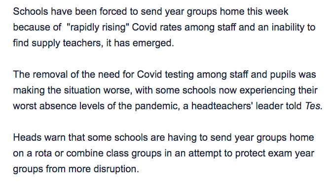 4/ Schools 'forced to send year groups home' because of 'rapidly rising' and cannot find anybody to do the deadly job.