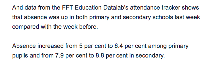 Massive increases in absence here: 28% increase in Primary and 11% in secondary: