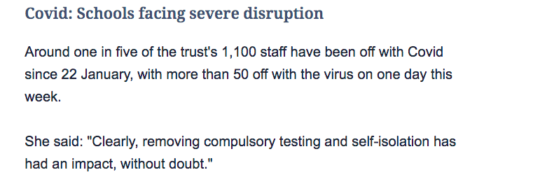 The schools are in clear crisis: the worst and biggest outbreaks since the pandemic started. Many schools are having to close and send year groups home to remote: the destruction is immense and never ending—supply staff have also run out—that's what happens when you send people