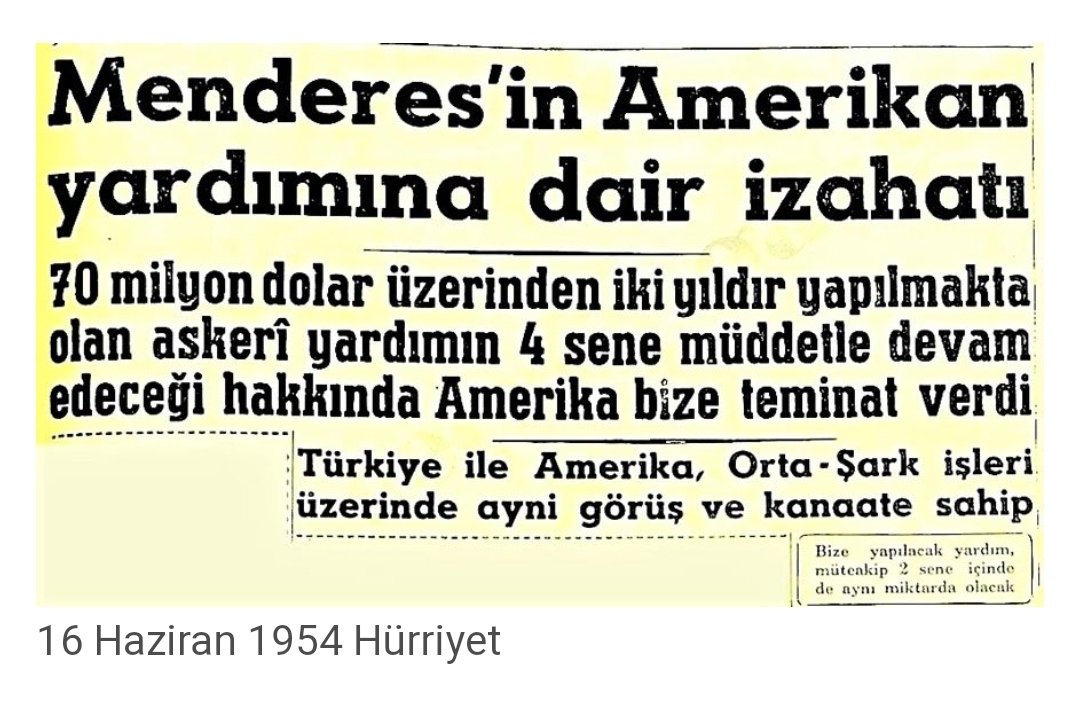 4 Haziran 1954 tarihli New York Times'ın haberine göre ABD, Türkiye'ye 300.000.000 dolarlık ekonomik yardım yapacaktı.