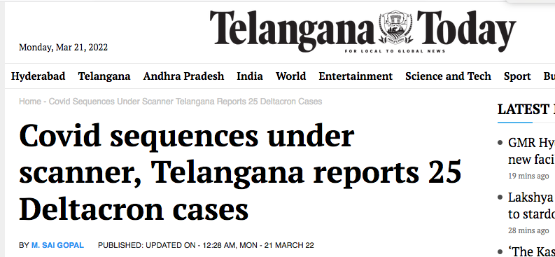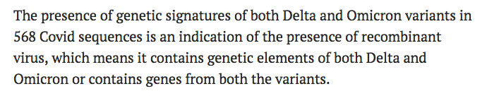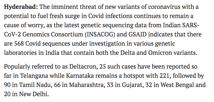 6/ What's interesting is that India was one of the first places to talk about Deltacron—back in Dec 2021. At the time it was reported as 'Delmicron'