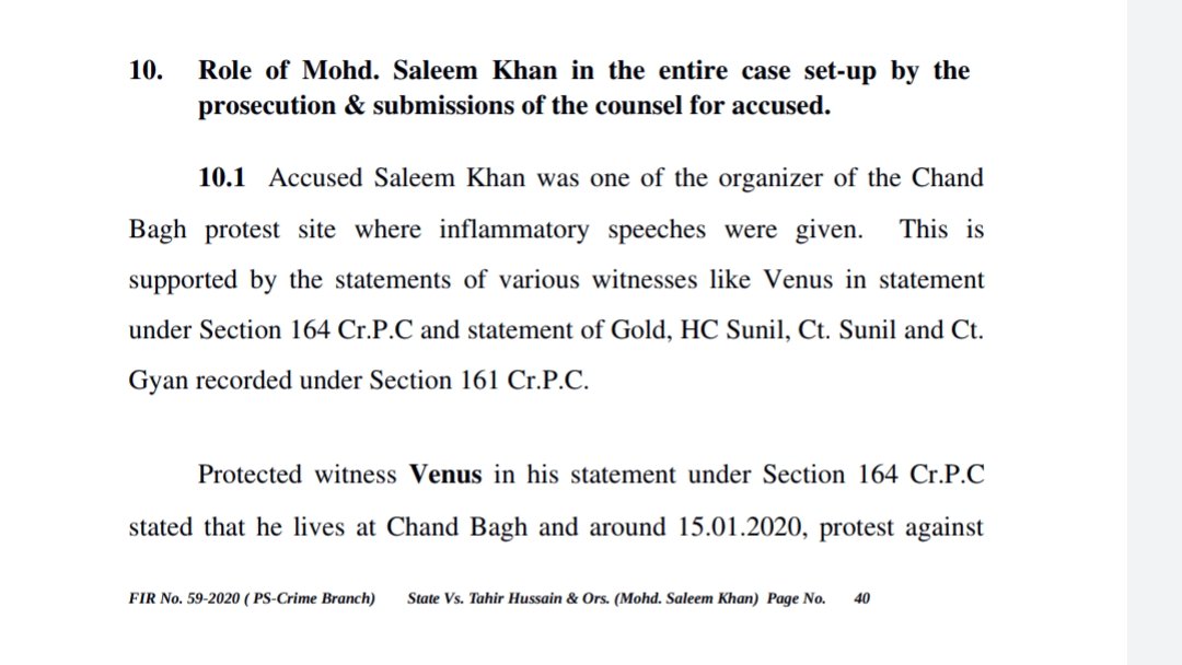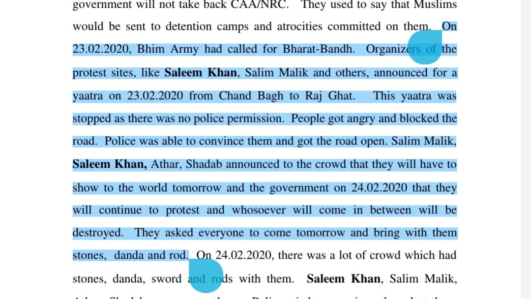 BREAKING: Refusing bail to Saleem Khan the Court has noted that Khan was one of organizers of the Chand Bagh protest site where inflammatory speeches were given - a fact which is supported by witness statements.