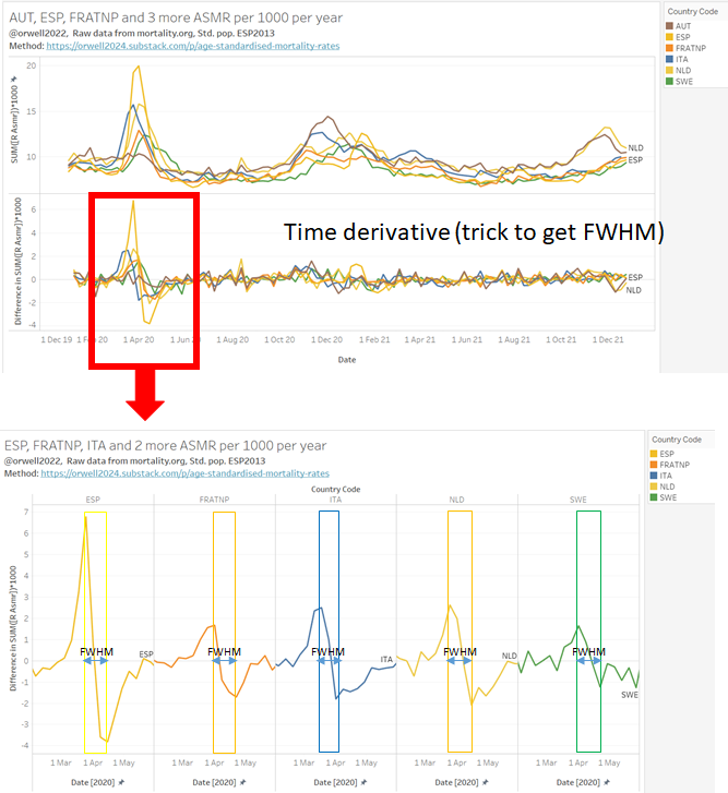 11/ So let's extract FWHM a bit more systematic. They all look the same, except of course Austria which completely suppressed peak 2020 Q1, but then paid the price later (and added collateral damage).