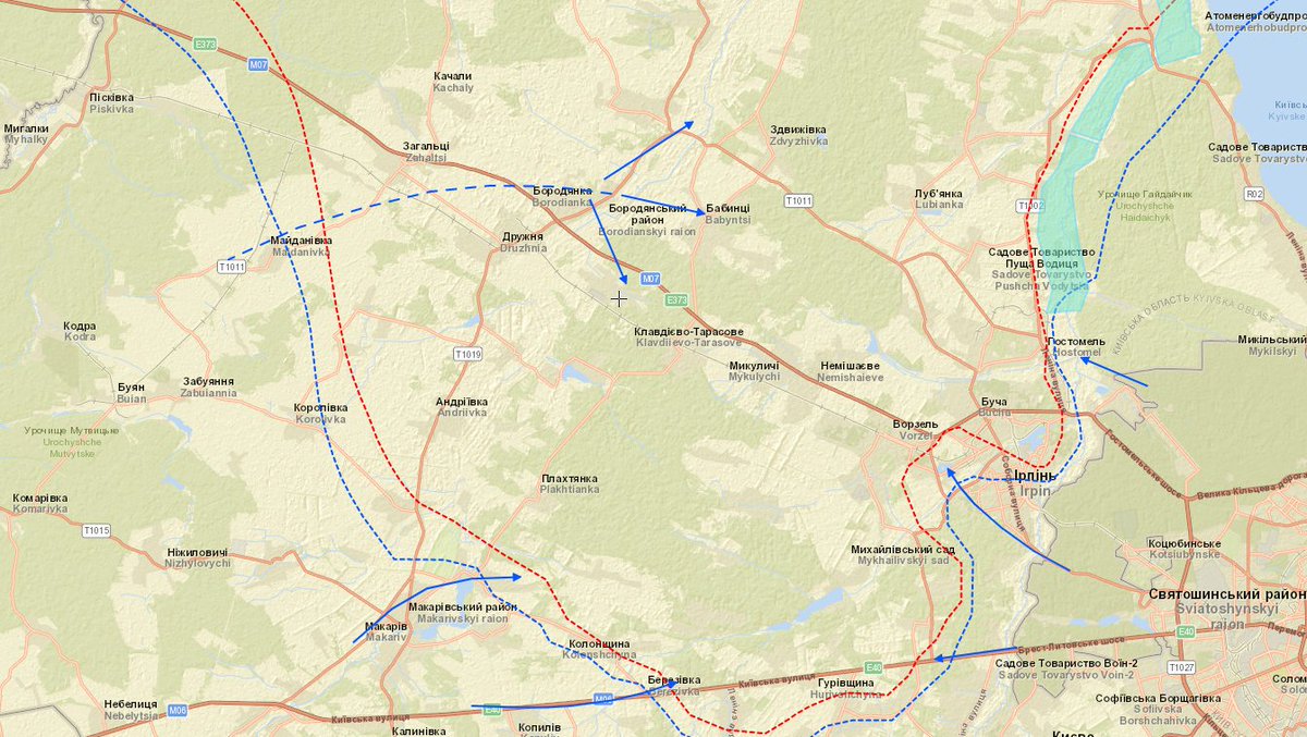 Sosiaalisessa mediassa kiertää huhuja, että Ukraina olisi katkaissut Venäjän huoltoyhteydet niin Buchaan, Irpiniin kuin Hostomeliin. Toteutus näyttäisi kartalla suurin piirtein tältä. 7/