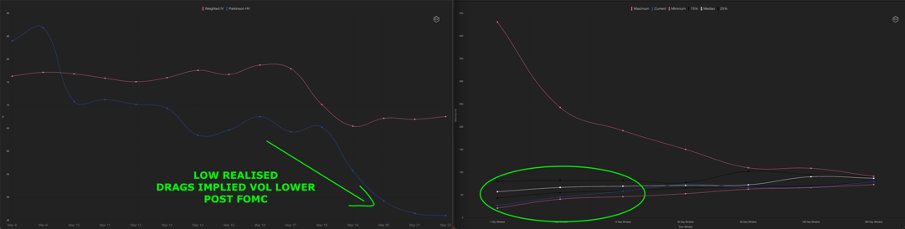 5/ Crypto realised vol collapsed taking implied with it post-FOMC. IV-RV spread still high though as front caught a bid on potential upside break.