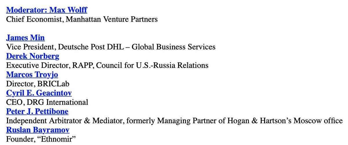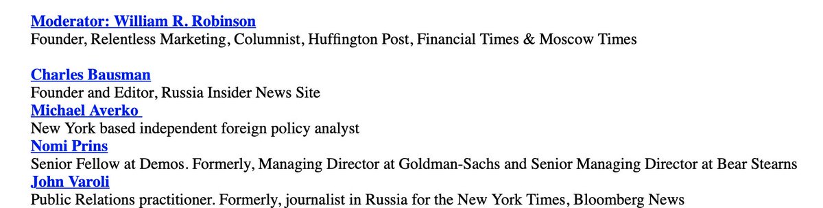 I first learned about Lozansky's World Russia Forum in 2017, looking at the 2015 event that preceded Branson's NY event. Bausman had attended that World Russia Forum, as well. Stephen F. Cohen was there on a panel w/ Dana Rohrabacher, and... /10