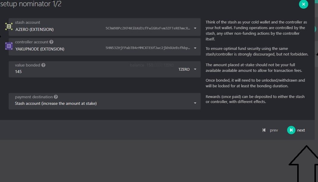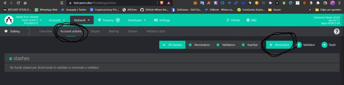 2- test.azero.dev/#/staking adresine gideceğiz, sayfa açılınca sağ üst tarafta polkadot.js bağlantı için izin istiyecektir.