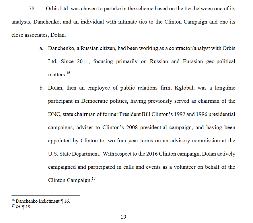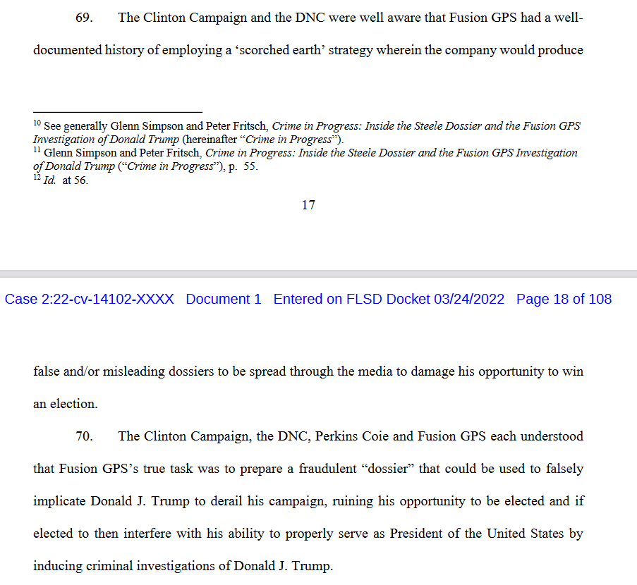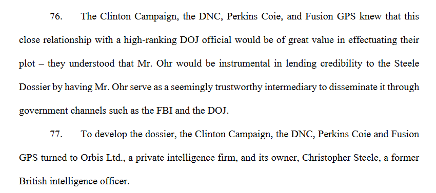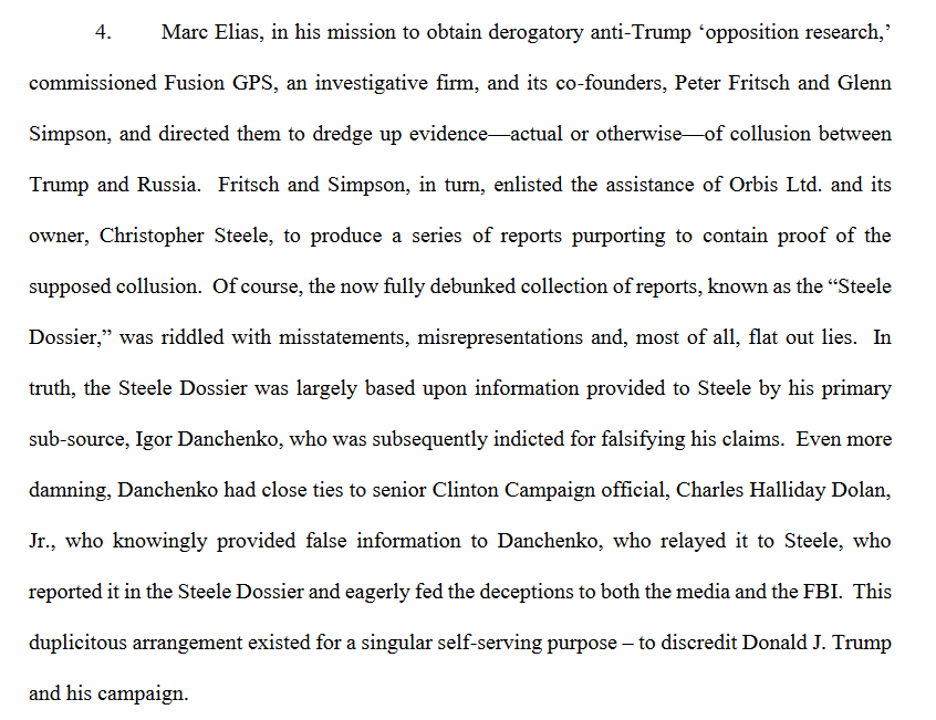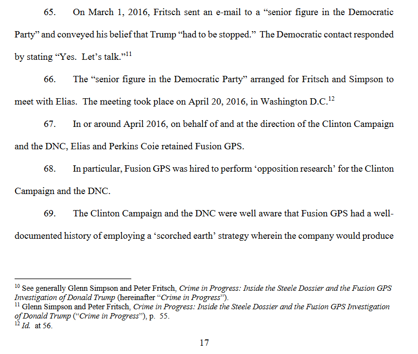 Claiming that the Clinton Campaign & DNC hired Fusion GPS because they knew they would write a false dossier to help their clients get what they wanted.