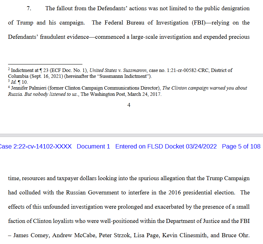 While the suit names 5 FBI personnel, only 2 of them have been credibly accused of criminal actions (Clinesmith & McCabe). McCabe's protege Page is likely guilty too.