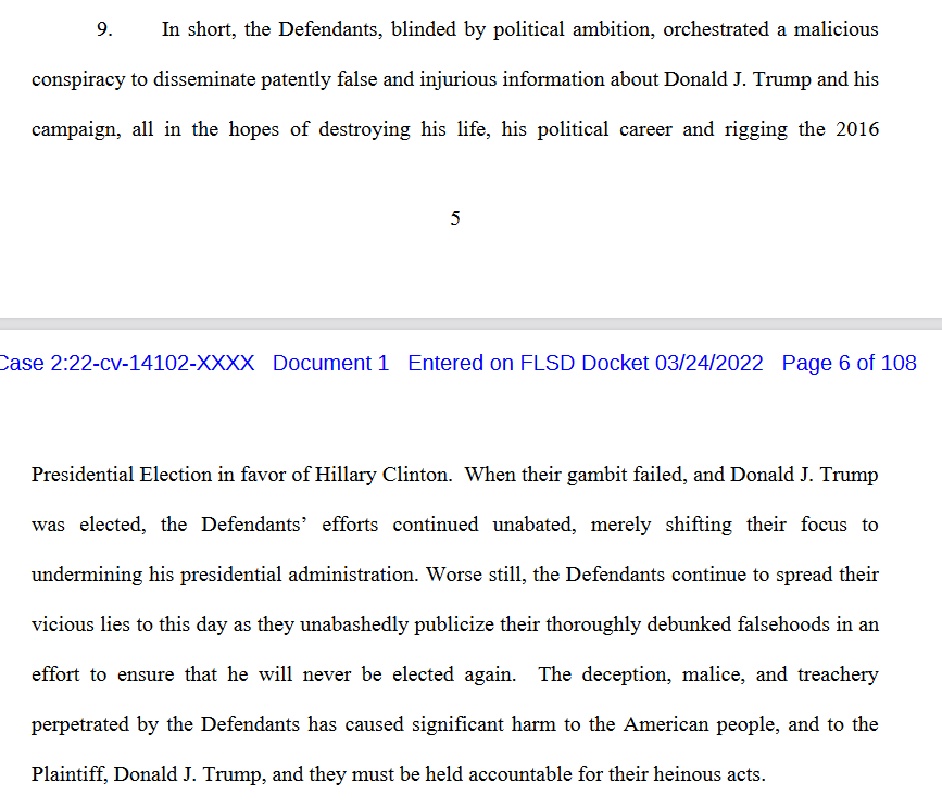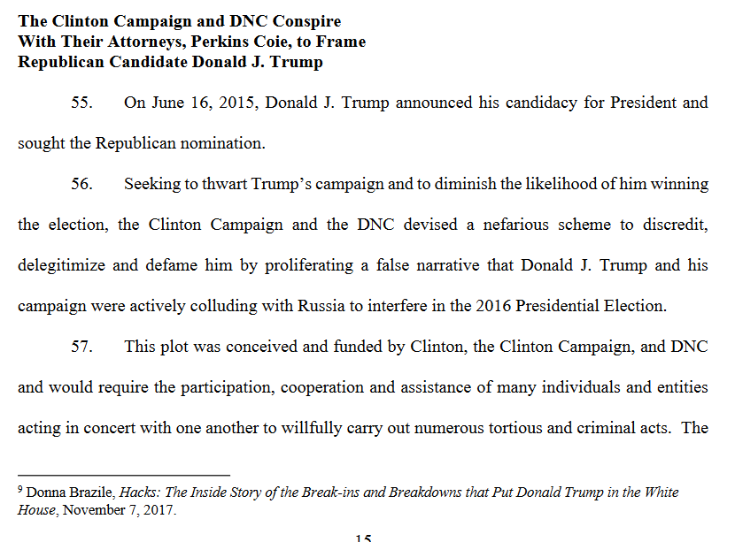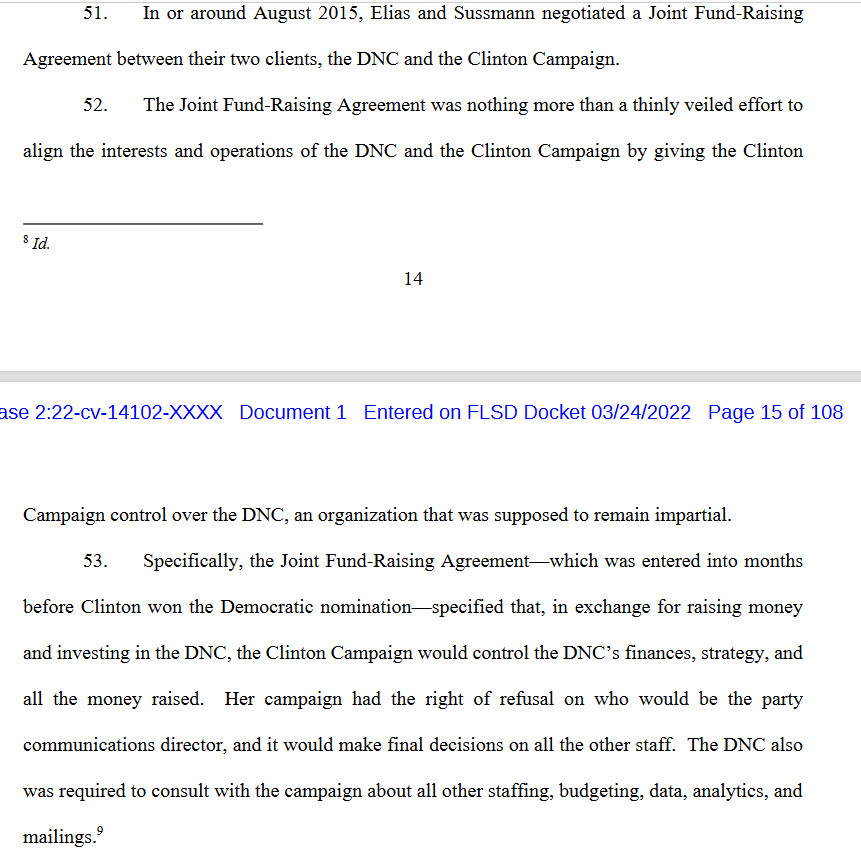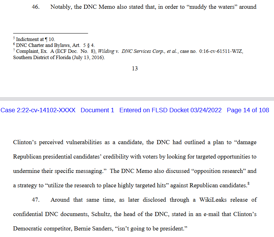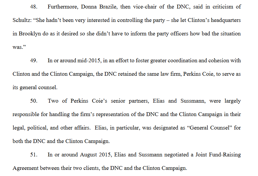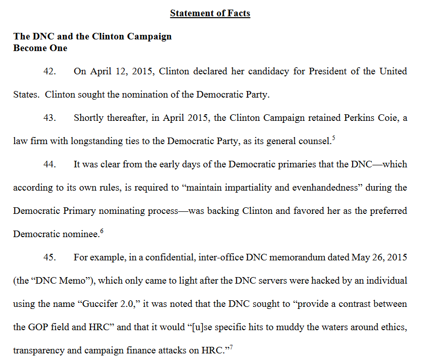 The suit includes the Clinton take over of the DNC to rig the 2016 primaries for Hillary.