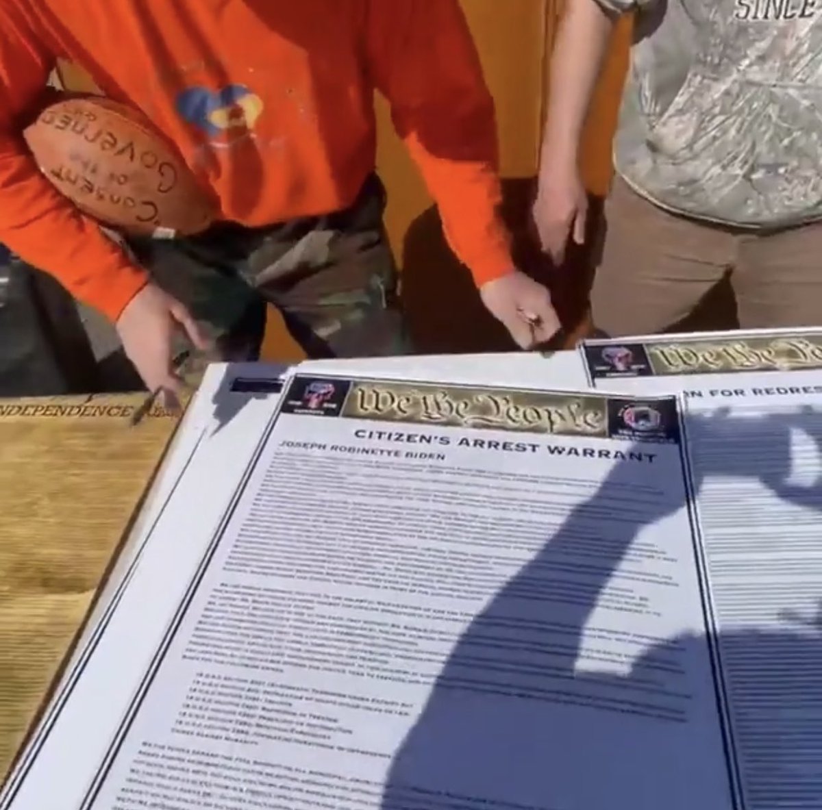 A massive amount of those attending the convoy have signed the documents calling for “the abolishment of the federal government” and the arrest of Joe Biden.