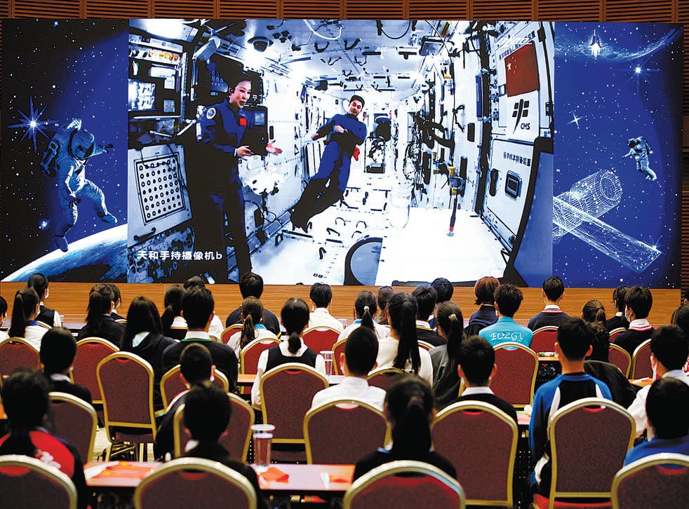 On Wednesday, Chinese astronauts Zhai Zhigang, Wang Yaping and Ye Guangfu conducted a second science lecture to students in different cities in China through live streaming.