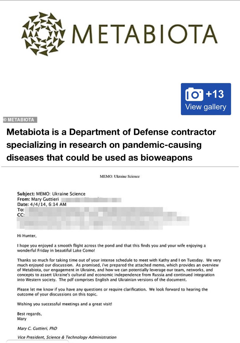 As we have always said, Hunter is the Lee Harvey Oswald with Metabiota in the Ukrainian bioweapons game - the “clean” partner. Black and Veatch is the dark hand, and they patsied Hunter.
