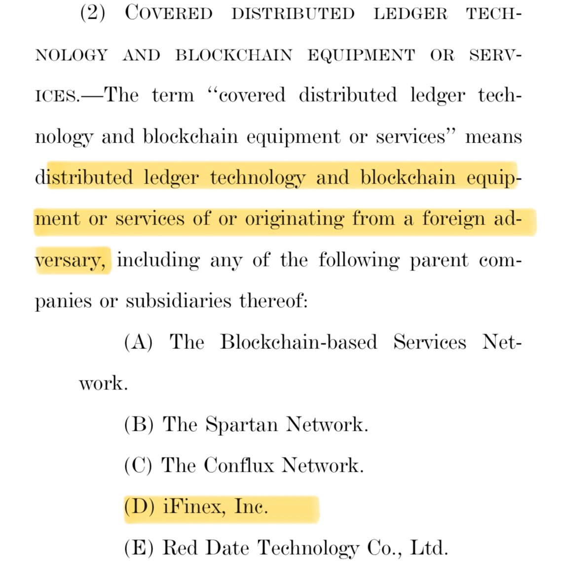 2.5/ ... totally unrelated, bill in Congress stated Tether's parent company is known to be owned by foreign adversaries... Image