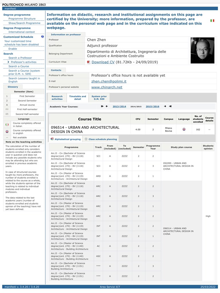 🔻 Chen Zhen’s page on the website of Politecnico Milano