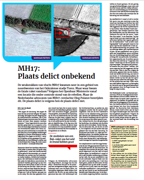 In mijn boek beschrijf ik dat op 16 juli 2014 een konvooi van het Oekraïense leger bestookt is met GRAD-raketten vier kilometer ten oosten van Zaroshchenske. Dit is precies de lanceerlocatie die Buk-fabrikant Almaz Antey berekend heeft in het geval er geschoten is met 9M38M1-Buk.