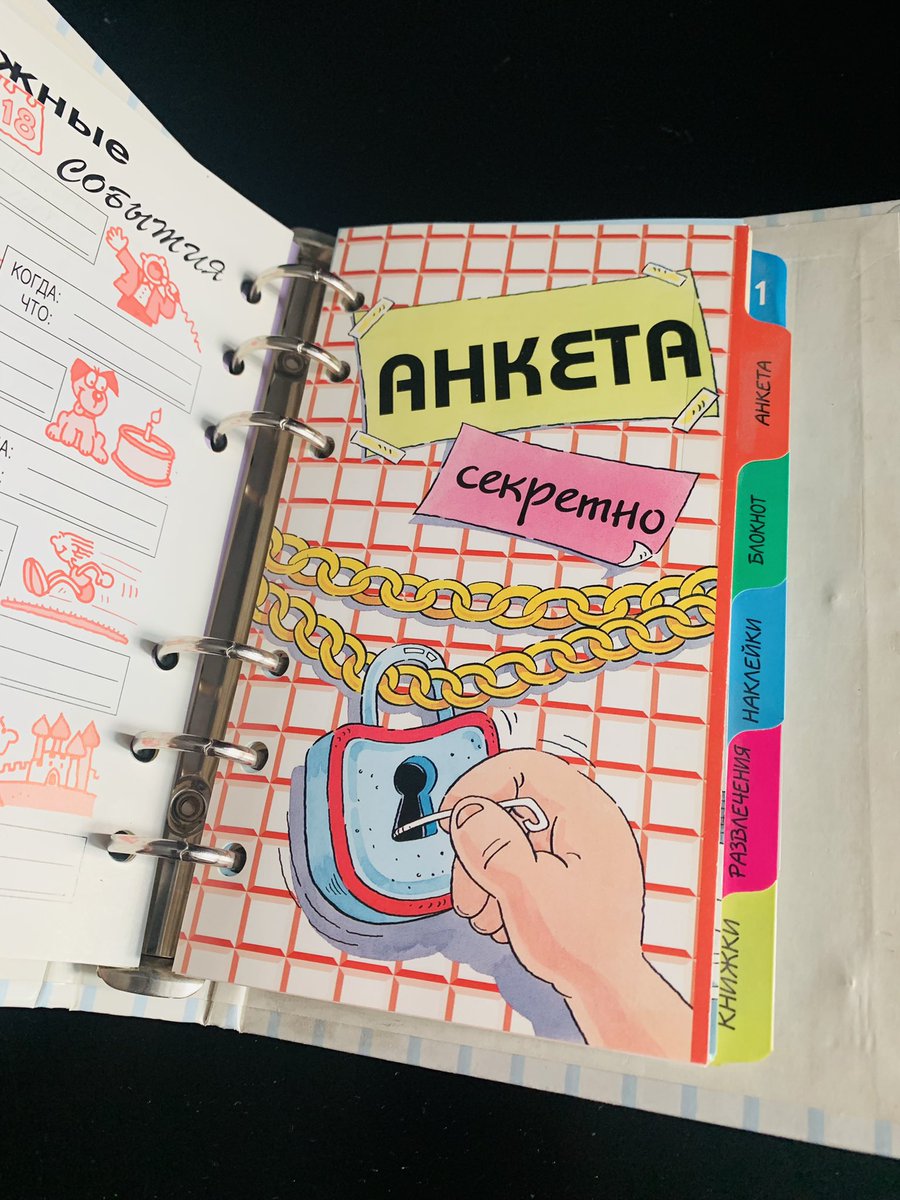 В оригинале помимо стандартной папочки выходили ещё и разные тематические, даже по «Звёздным войнам» были. До наших краёв добралось только руководство по выживанию в школе (оцените, как находчиво SAS превратилось в SOS) и «Сердечные тайны» с таблицей совместимости по Зодиаку.