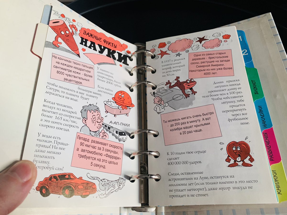 Что такое «Фан Факс»? Это детский органайзер, записная книжка с приколами в виде папки-регистратора (с кольцами). Отдельно продавались тонкие книжки на разные темы, которые можно было раздербанить на страницы и вставить в папку, собирая уникальную кастомную энциклопедию.