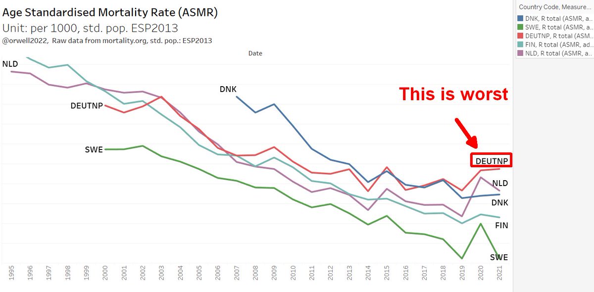 Germany doesn’t want to take reference from the free NW neighbors (all more democratic countries) who have lower mortality, higher life expectancy and lower child mortality (unmasked).