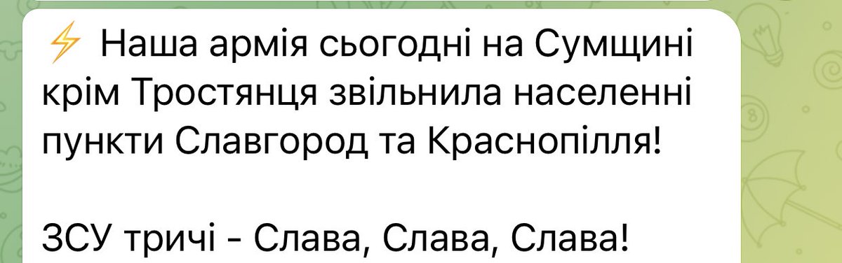 Ukraine army was successful in reclaiming the towns of Slavhorod and Krasnopillya as part of their counter offensive in the Sumy region - Verkhovna Rada MP Honcharenko #Ukraine#Russia#Putin